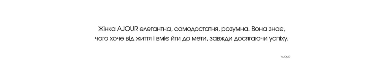 Філософія AJOUR полягає у пропагуванні любові досебе без компромісів. Вишукана мереживна білизна доречна щодня, а не лише дляособливих подій. Вона робить приємним кожен момент життя, надихає та заохочуєнасолоджуватись своїм відображенням щосекунди.