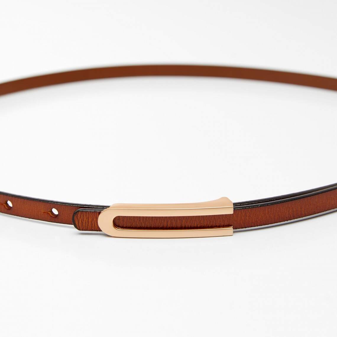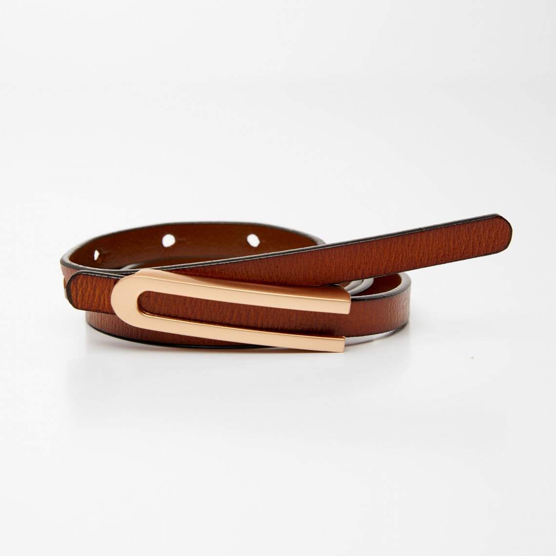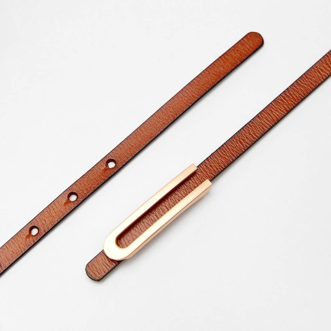 Пасок зі шкіри з металевою пряжкою. Незамінний аксесуар для створення стильного аутфіту. Ширина: 1 см. Колір: коричневий.