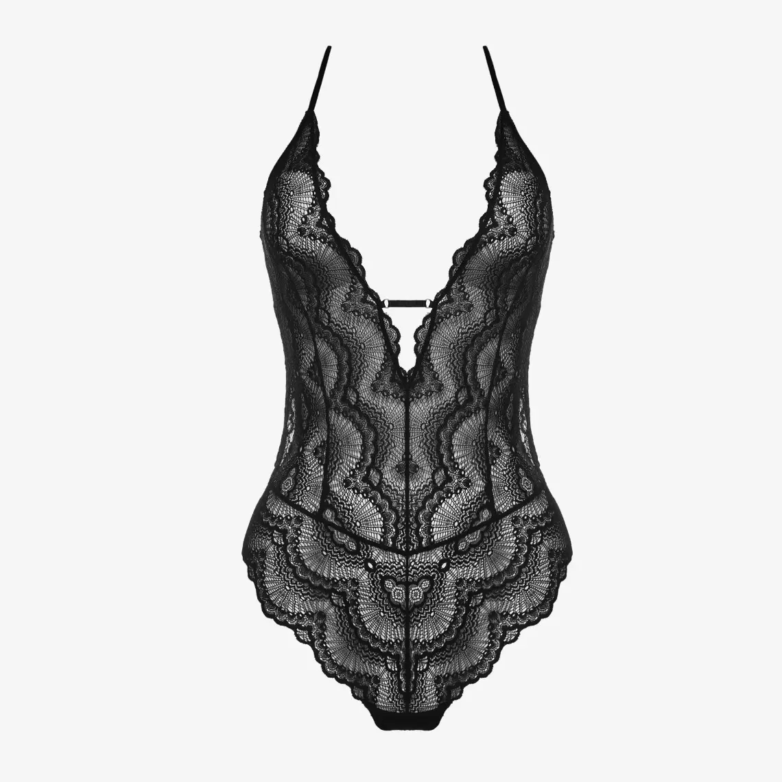 Пікантне мереживне боді. Виготовлене з чорного мережива. Без поролонових вставок та кісточок. З вирізом на спині. Є класична застібка на ластовиці та бавовняна підкладка. Склад: поліамід 69%, віскоза 6% поліестер 1%, бавовна 8%