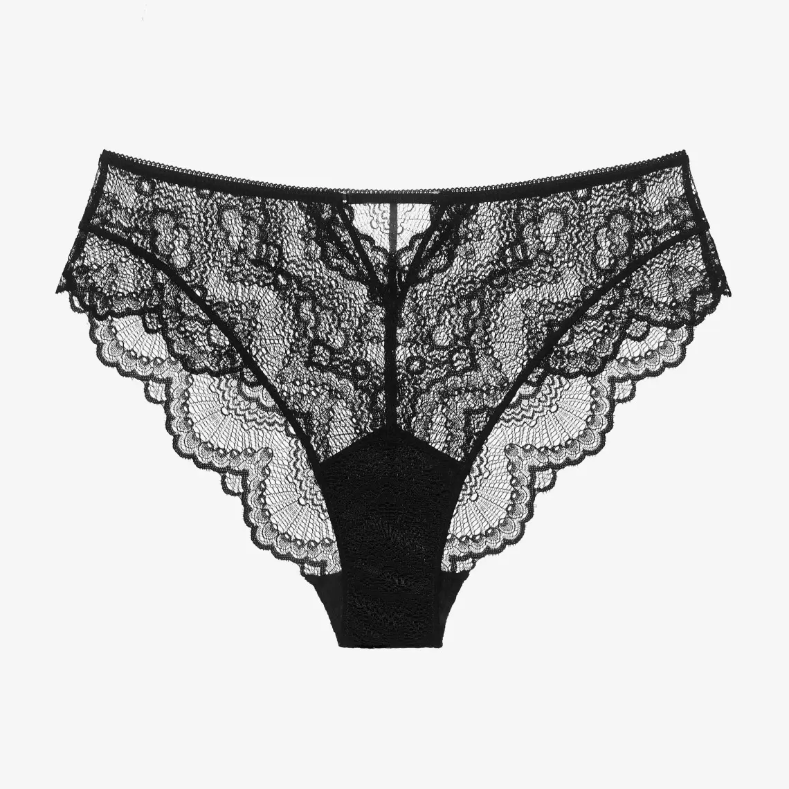 Сліпи чорного кольору з середньою посадкою. Виготовлені з мережива. Ластовиця зі 100% бавовни забезпечує інтимний комфорт. Склад: поліамід 69%, еластан 16%, віскоза 6%, поліестер 1%, бавовна 8%.