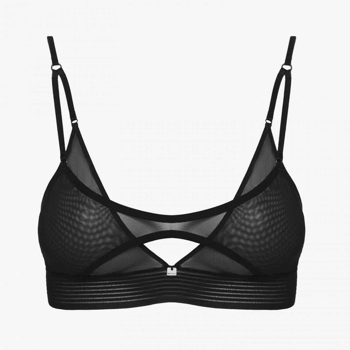 Бралет без кісточок чорного кольору. Виготовлений з сітки. Чашки з двома шарами сітки без поролону. Бретелі регулюються. Поліамід 88%, еластан 12%.