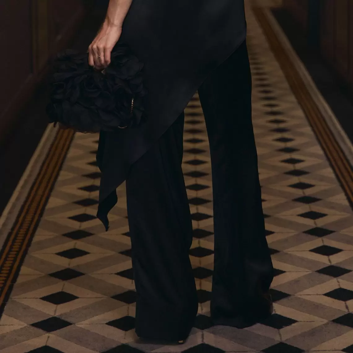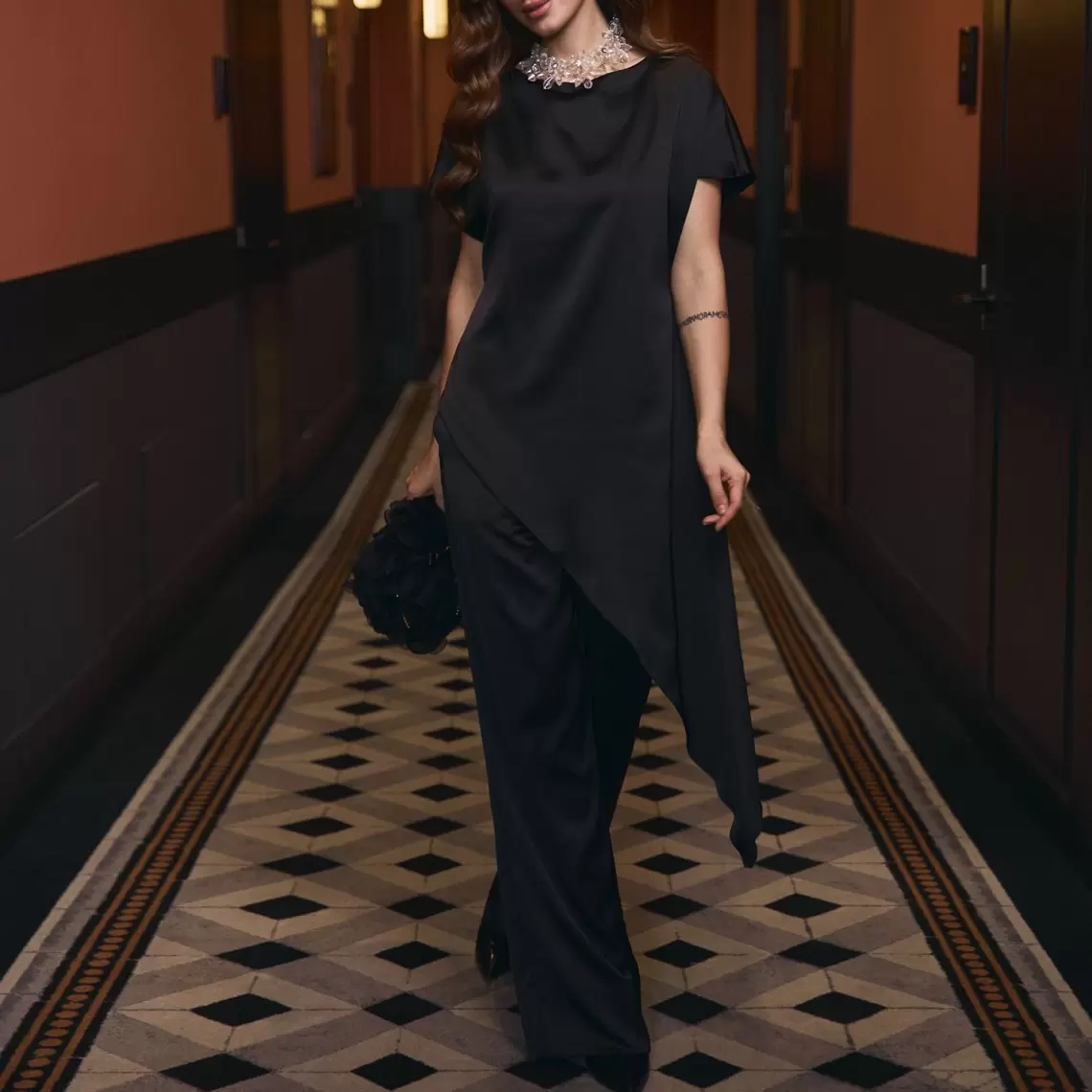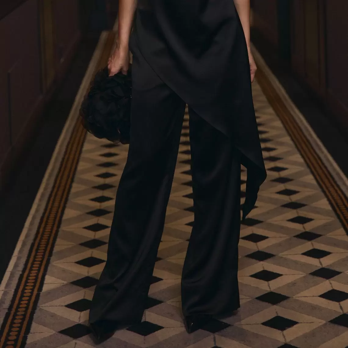 Елегантні прямі штани. Виконані з чорного сатину. З блискавкою збоку. Утворюють вишуканий комплект з сатиновим топом з цієї ж лінії. Склад: поліестер 97%, спандекс 3%.