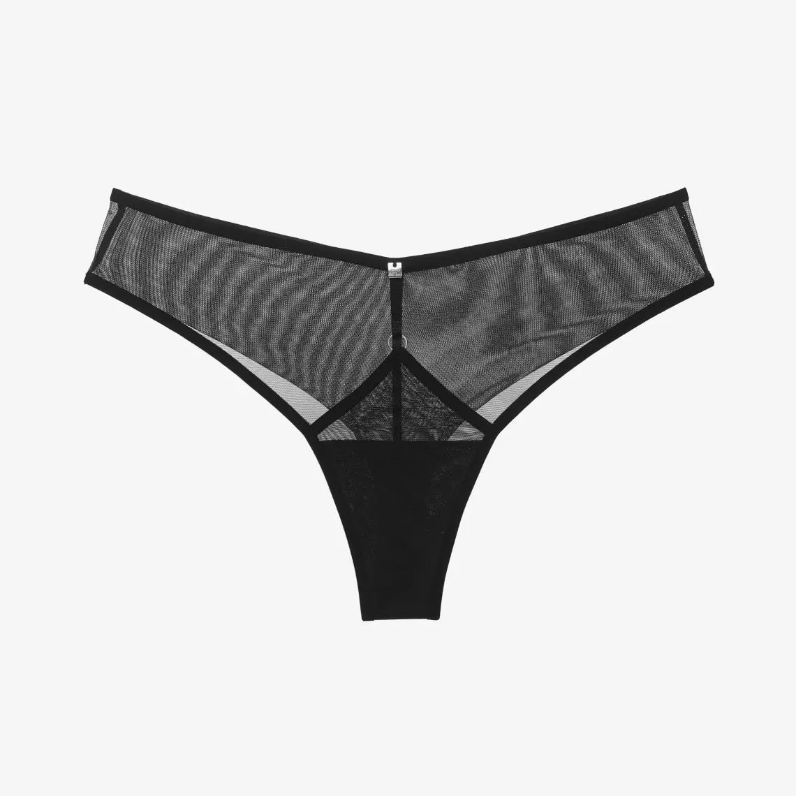 Mid rise brazilian thongs. Made of black mesh. 100% cotton gusset provides intimate comfort. Polyamide 84%, elastane 8%, cotton 8%.