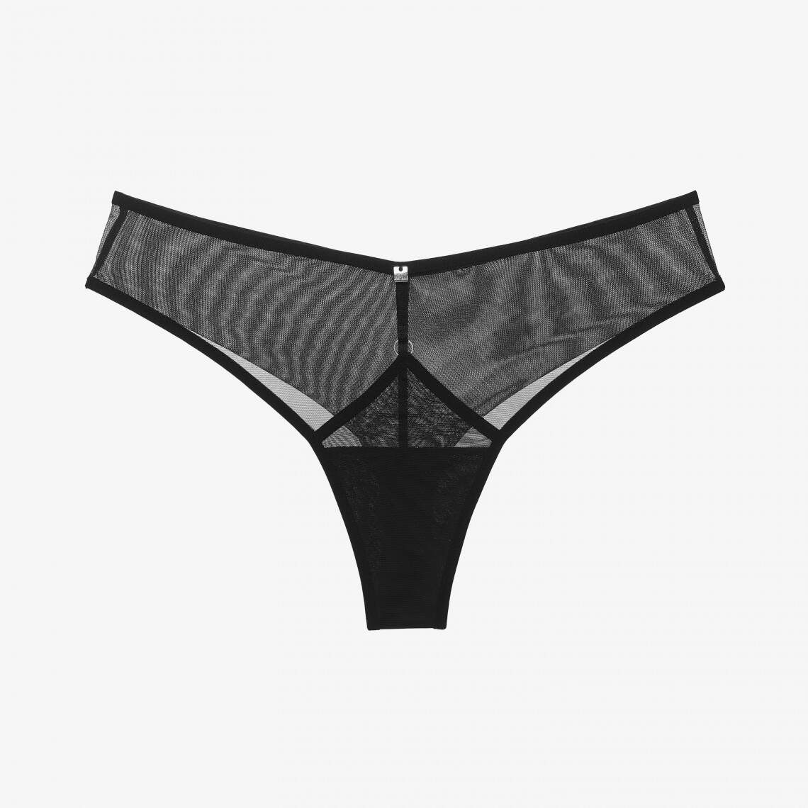 Mid rise brazilian thongs. Made of black mesh. 100% cotton gusset provides intimate comfort. Polyamide 84%, elastane 8%, cotton 8%.