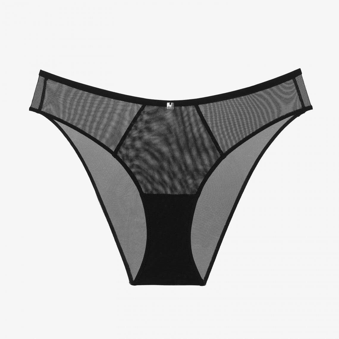 Mid-rise slips. Made of black mesh. 100% cotton gusset provides intimate comfort. Polyamide 84%, elastane 8%, cotton 8%.