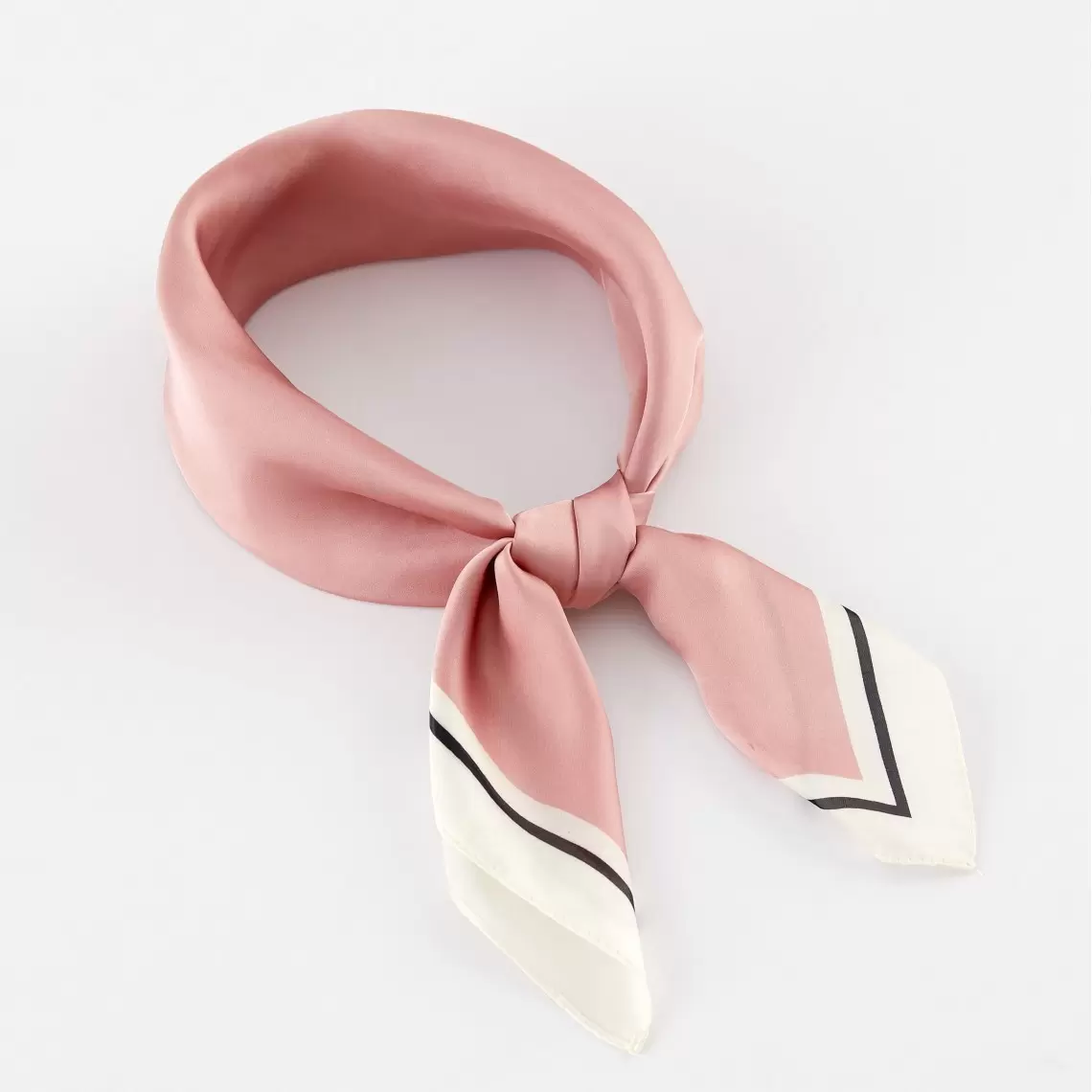 This kerchief is the embodiment of refined minimalism and classic style. Thanks to its sleek and understated design, it effortlessly complements both a sharp business suit and a romantic dress. The delicate, soft powder-pink shade adds a touch of freshness and a youthful glow to any look. The 70 × 70 cm size is a universal format, perfect for creating a variety of elegant neck knots or for use as a sophisticated hair accessory. Made from 100% polyester, the fabric is highly practical, wrinkle-resistant, and features a smooth, pleasant-to-the-touch surface that feels wonderful against the skin.