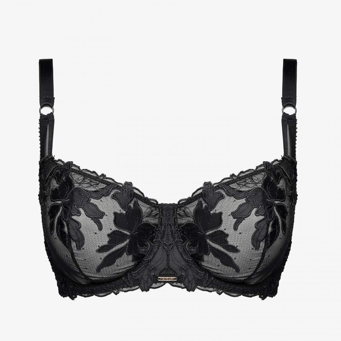 A soft underwired bra that combines classic support with a refined design. Its cups of semi-sheer mesh are decorated with exquisite floral appliques made of smooth satin, which create a romantic and delicate look. Vertical darts on the cups create a flawless shape, giving the silhouette elegance. The band of delicate mesh and thin adjustable straps ensure a comfortable fit throughout the day. Composition: Polyamide 72%, Elastane 18%, Viscose 8%, Polyester 2%