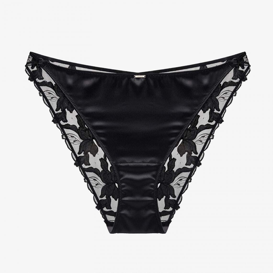 Ці сліпи з класичною середньою посадкою — справжнє втілення розкоші та легкості. Передня панель виконана з гладкого, як шовк, чорного атласу, а ззаду використано напівпрозору сітку, прикрашену вишуканими квітковими аплікаціями. Зручна бавовняна ластовиця забезпечує відчуття свіжості та максимальний комфорт протягом усього дня. Ця модель ідеально підкреслює жіночність та витонченість. Склад: поліамід 69%, еластан 16%, віскоза 6%, поліестер 1%, бавовна 8%