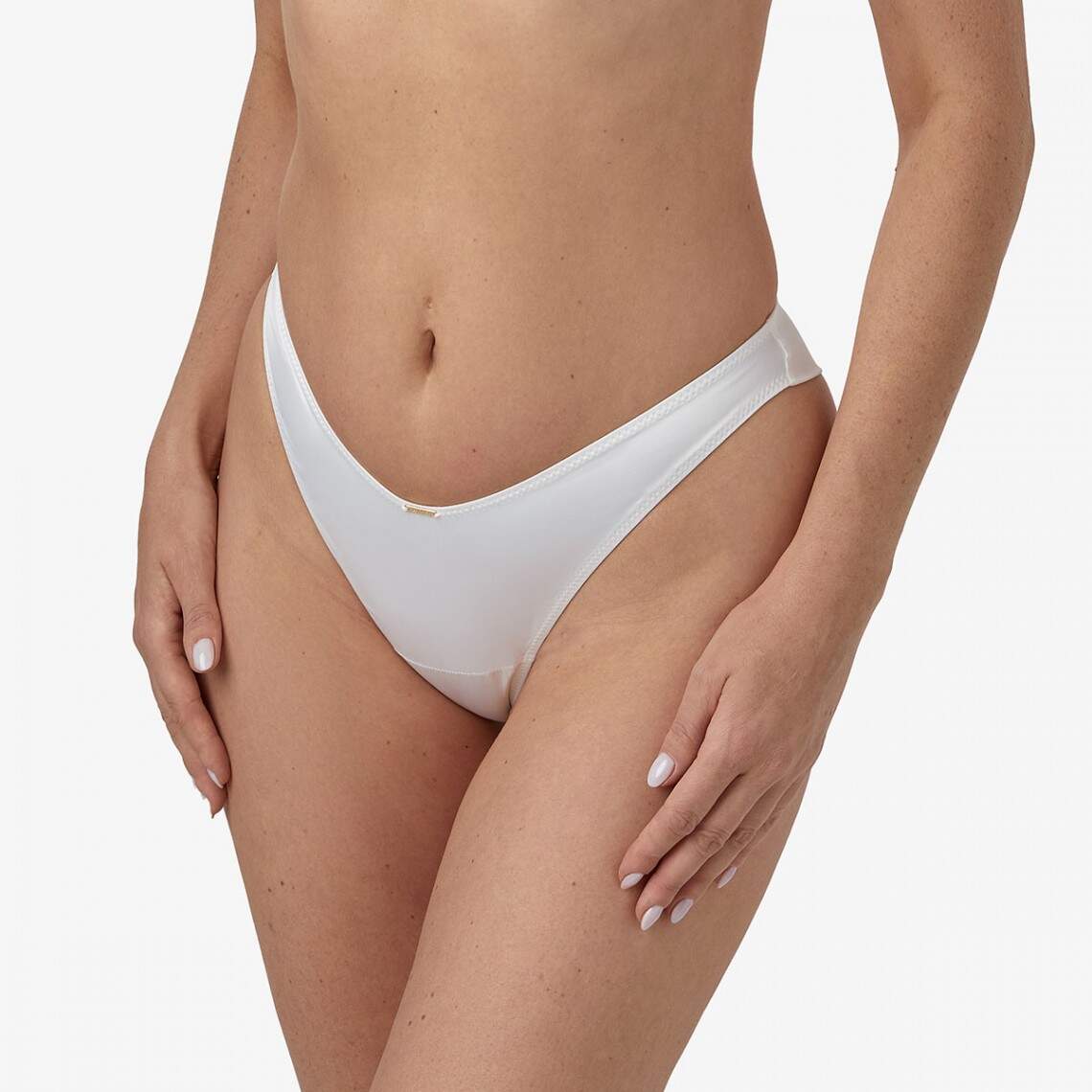 Tender cream mid rise brazilian thongs. Made of satin fabric. Cotton gusset provides an intimate comfort. Polyester 76%, elastane 16%, cotton 8%.