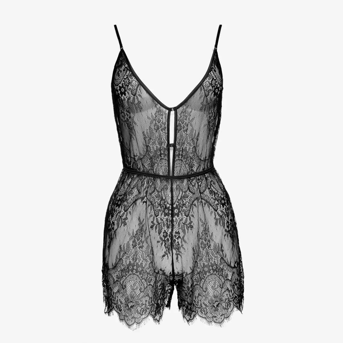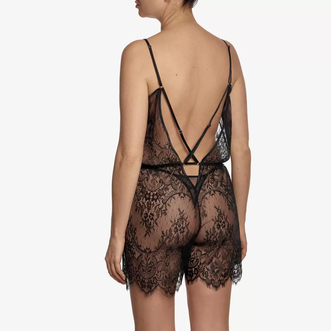 This sexy jumpsuit is a bold and sophisticated choice for special moments. It is crafted from delicate black lace with a mini length. Vertical cutouts on the front and a back cutout add seduction to the look, while adjustable straps and an elastic waist ensure a perfect fit and comfort. Composition: Polyamide 72%, Elastane 18%, Viscose 8%, Polyester 2%