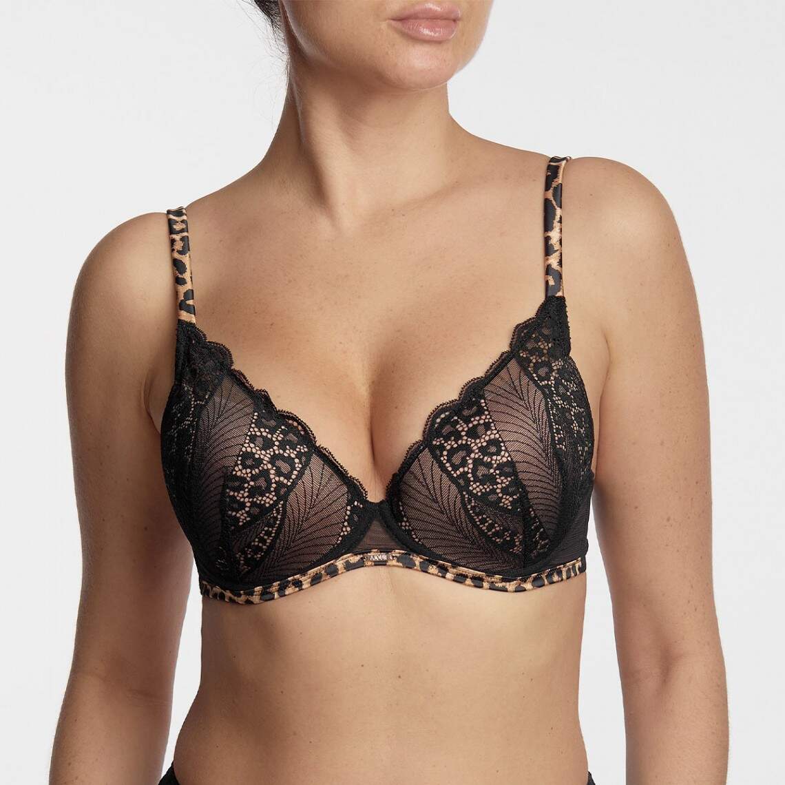 This push-up bra is designed to accentuate your natural beauty and give you maximum confidence. Sophisticated lace with a fierce leopard print wraps the cups, adding a touch of sensuality to the look. Thanks to reliable underwire and soft inserts, it provides impressive volume and flawless support. Adjustable straps allow for a perfect fit, so you can feel absolutely irresistible. Composition: Polyamide 72%, Elastane 18%, Viscose 8%, Polyester 2%