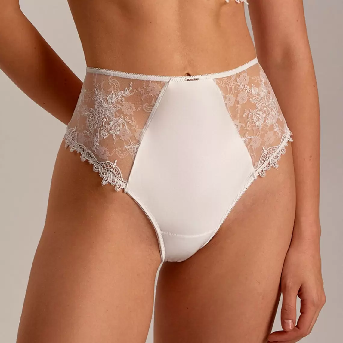 These briefs with a high-rise combine comfort and elegance. Smooth, silk-like ash rose satin contrasts with semi-sheer mesh, adorned with elegant embroidery. A comfortable cotton gusset ensures maximum comfort. These briefs will perfectly complement any bra from this line, creating a harmonious and complete look. Composition: Polyamide 69%, Elastane 16%, Viscose 6%, Polyester 1%, Cotton 8%