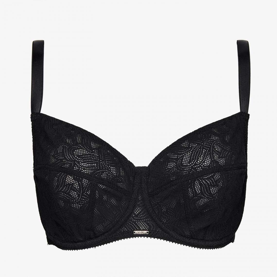 This elegant soft bra is the ideal solution for comfort and reliable support. It features a full cup with underwire and is crafted from refined black lace. The model is specifically designed to reliably support a lush bust, while providing a flawless look. Adjustable straps allow for a perfect fit. Composition: Polyester 88%, Elastane 12%