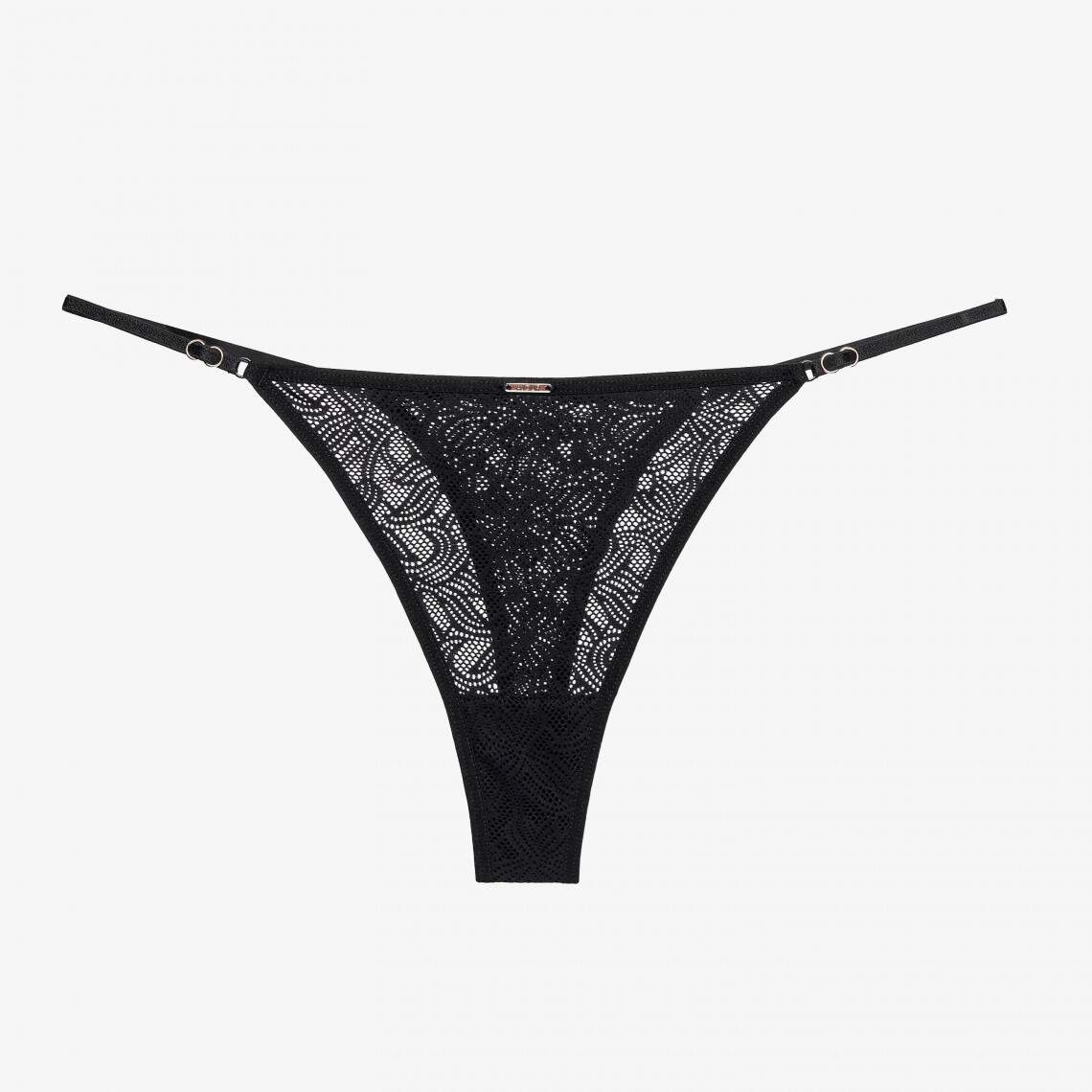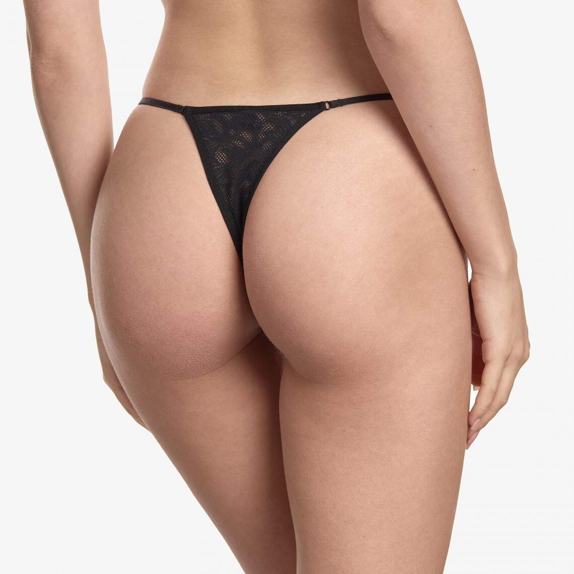 Experience the quintessence of femininity with this thong that combines delicacy and seduction. Crafted from sophisticated black lace, it features a low-rise cut that subtly highlights the lines of the hips. The thin waistband is adjustable, ensuring a perfect fit, and a cotton gusset provides a feeling of comfort and freshness. Composition: Polyester 84%, Elastane 8%, Cotton 8%