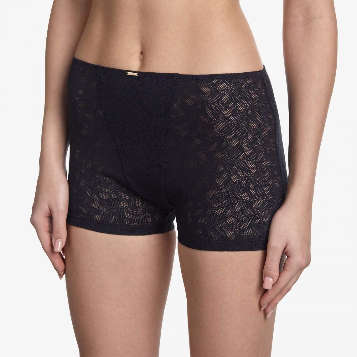 These loungewear shorts are the perfect choice for those who value the combination of comfort and elegance. Crafted from delicate black lace, they feature a fitted cut and a mini length that beautifully highlights your natural curves. These shorts are an excellent addition to the lace tank top from this same line. Composition: Polyester 100%