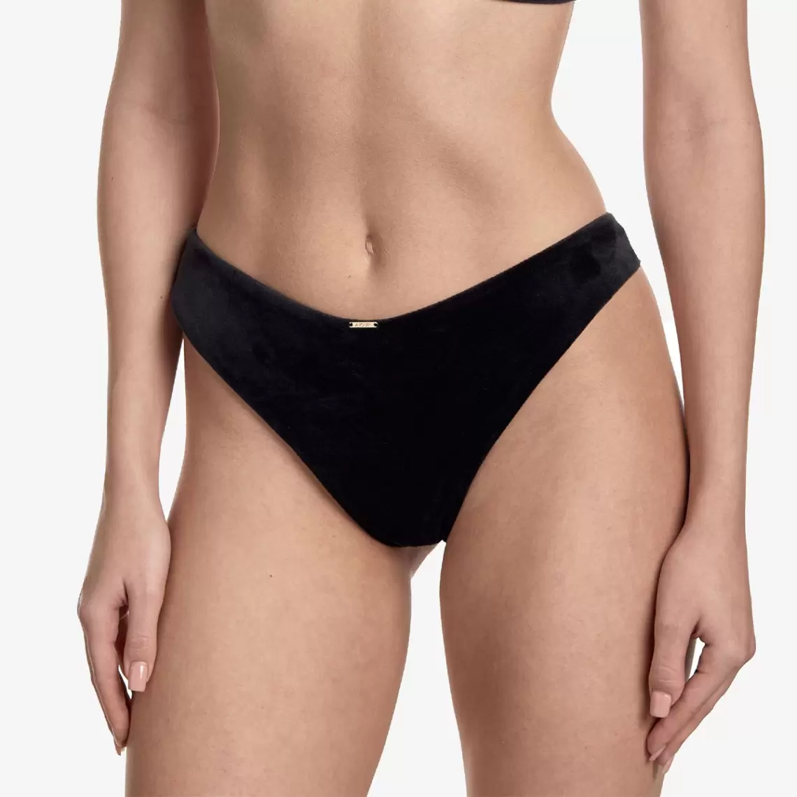 These original mid-rise Brazilian briefs are a true embodiment of sophisticated style. They are crafted from soft black velvet on the front and semi-sheer mesh on the back, creating a sensual contrast of textures. The cut of the model perfectly accentuates your curves, and a cotton gusset ensures comfort all day long. Composition: Polyamide 76%, Elastane 16%, Cotton 8%