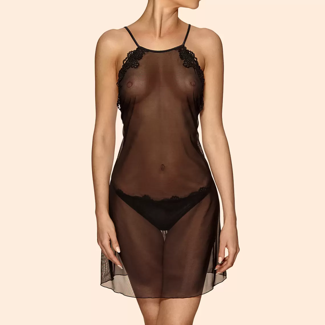 Sexy chemise | A gently chemise of extraordinary beauty and femininity. Is made from ultra-soft materials. A posh material highlights the unconventional silhouette. Top trimmed with floral lace, brings a playful charm while adjustable straps create comfortable fit. Spanish soft mesh will add flirt.