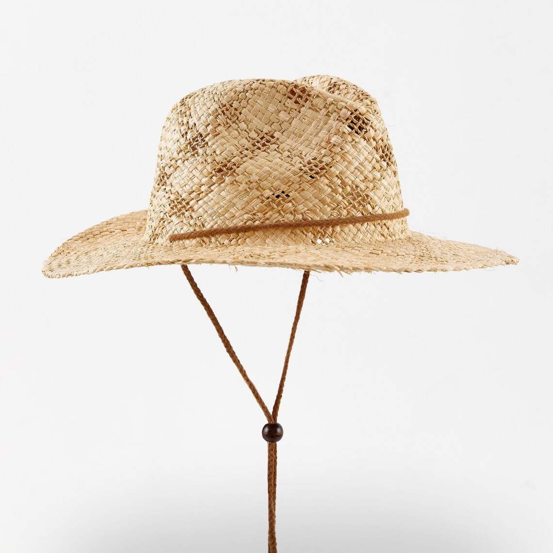 Ця модель поєднує в собі автентичний дизайн та практичність, необхідну для ідеального відпочинку на узбережжі або активних літніх прогулянок. Виготовлений із натуральної рафії., яка славиться своєю міцністю та водночас неймовірною легкістю. Ви майже не відчуєте капелюх на голові. Спеціальні декоративні отвори в плетінні не лише створюють цікавий візерунок, а й забезпечують ідеальну циркуляцію повітря, рятуючи від спеки навіть у найгарячіші години. Капелюх оснащений функціональним шнурком із фіксатором, який не дозволить вітру зірвати аксесуар під час морської прогулянки на катері або відпочинку на вітряному пляжі. Лаконічний коричневий ремінець навколо тулії додає моделі характеру та завершеності.