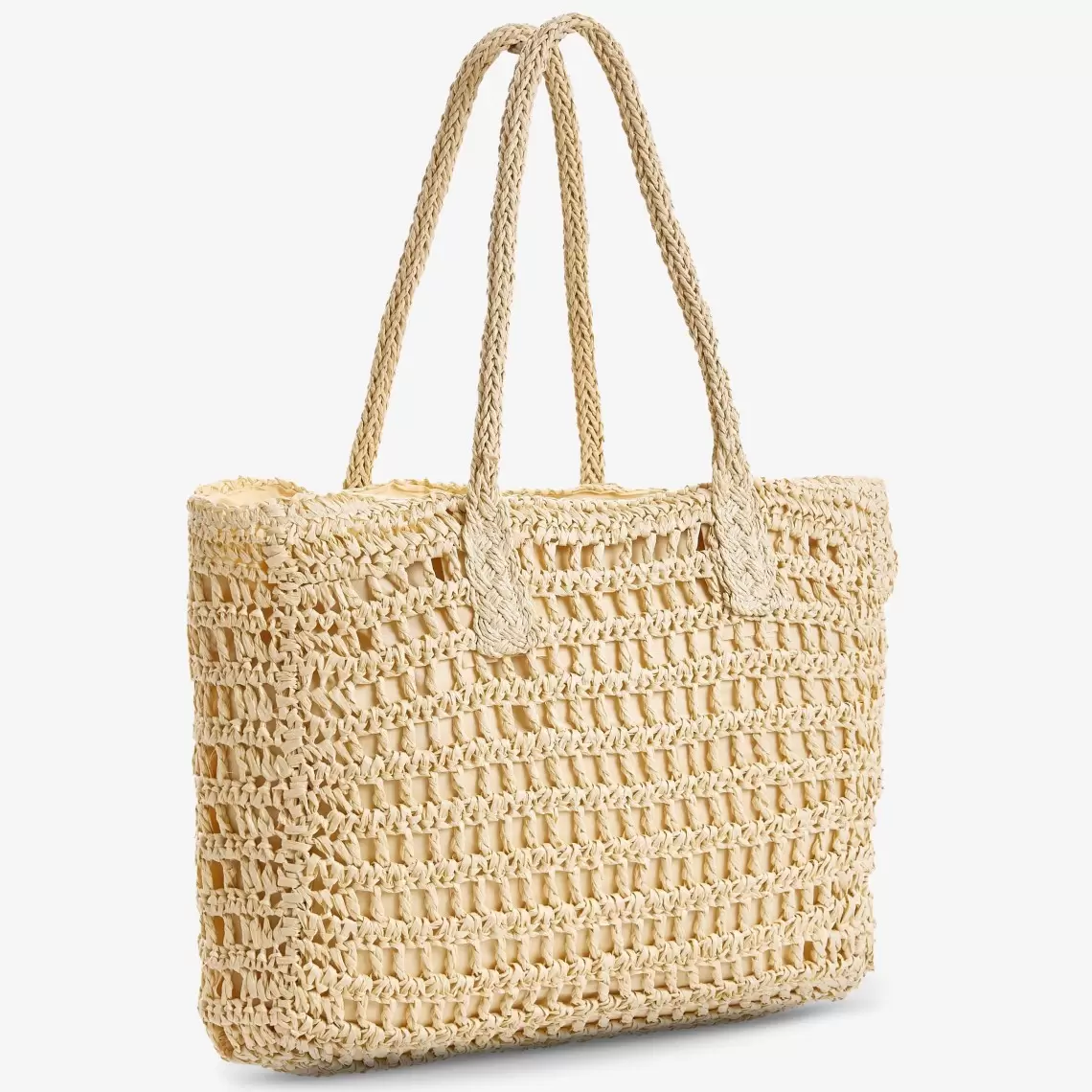 Плетена сумка молочного кольору стане ідеальним доповненням до лляного одягу та світлим аксесуарам. Сумка має ажурне, "дихаюче" плетення, що підкреслює автентичний літній стиль. Плетені ручки зручно лягають на плече, а ще модель оснащена підкладкою та замком-блискавкою. Розмір: 45×42 см. Це місткий формат, який дозволяє зручно розмістити все необхідне для відпочинку, від пляжного рушника до улюбленої книги.Склад: 100% паперова мотузка. Матеріал легкий та приємний на дотик, при цьому він достатньо міцний для щоденного використання.