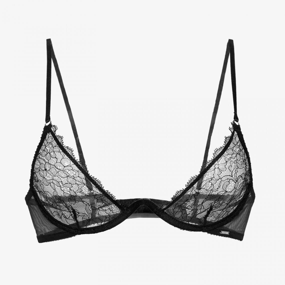 Сексуальний каркасний бюстгальтер планж без поролону. Виготовлений з тендітного чорного мережива. Стан виготовлений з сітки. Бретелі регулюються. Склад: поліамід 72%, еластан 18%, віскоза 8%, поліестер 2%.