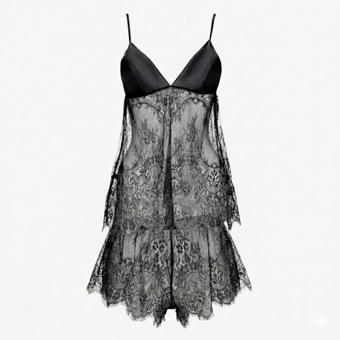 Цей спокусливий комплект створений для комфорту та чуттєвості. Він складається з топу та шортів, виконаних з ніжного чорного мережива. Топ має сатинові чашки та тонкі регульовані бретелі, що дозволяють налаштувати посадку. Шорти міні довжини з гумкою на талії гарантують зручність та свободу рухів. Склад: поліамід 72%, еластан 18%, віскоза 8%, поліестер 2%