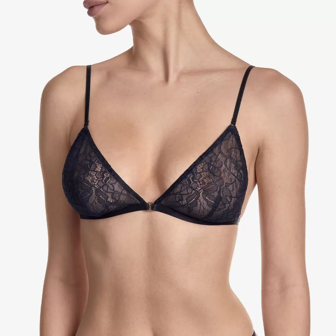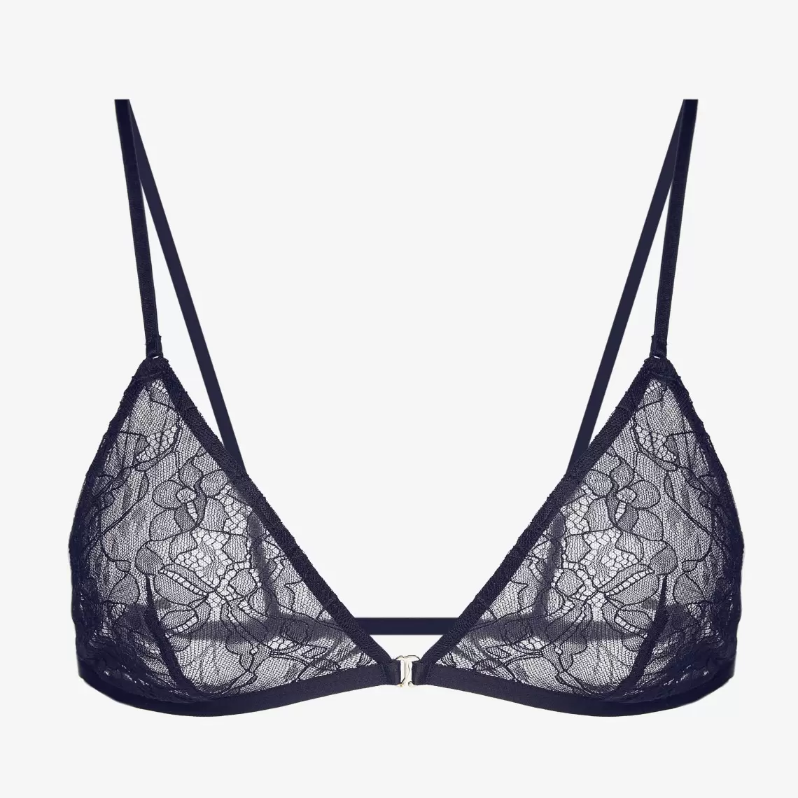 Цей лаконічний бралет без кісточок — втілення комфорту та елегантності. Виконаний з вишуканого темно-синього мережива, він має зручну застібку спереду між чашками, що додає йому особливого шарму. Тонкі бретелі, що регулюються, дозволяють ідеально налаштувати посадку. Склад: поліамід 72%, еластан 18%, віскоза 8%, поліестер 2%