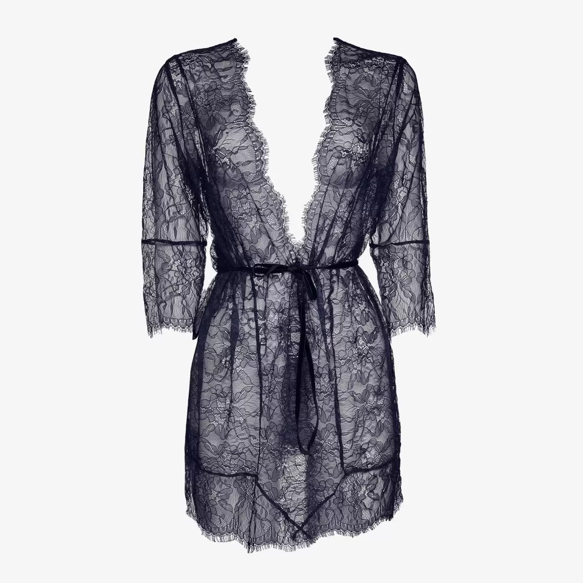 Загорніться у ніжність та легкість. Цей тендітний халат з темно-синього мережива — ідеальний вибір для створення вишуканого домашнього образу. Міні довжина та вільний крій роблять його неймовірно зручним, а елегантний пояс дозволяє підкреслити талію. Ця модель — справжнє втілення романтики. Склад: поліамід 72%, еластан 18%, віскоза 8%, поліестер 2%