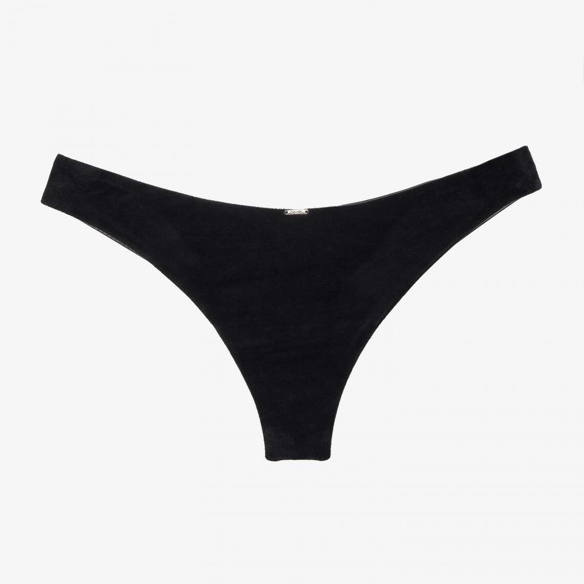 Ці оригінальні бразиліани з середньою посадкою — справжнє втілення вишуканого стилю. Вони виконані з м'якого чорного оксамиту спереду та напівпрозорої сітки ззаду, що створює чуттєвий контраст текстур. Крій моделі ідеально підкреслює форми, а бавовняна ластовиця забезпечує комфорт протягом усього дня. Склад: поліамід 76%, еластан 16%, бавовна 8%
